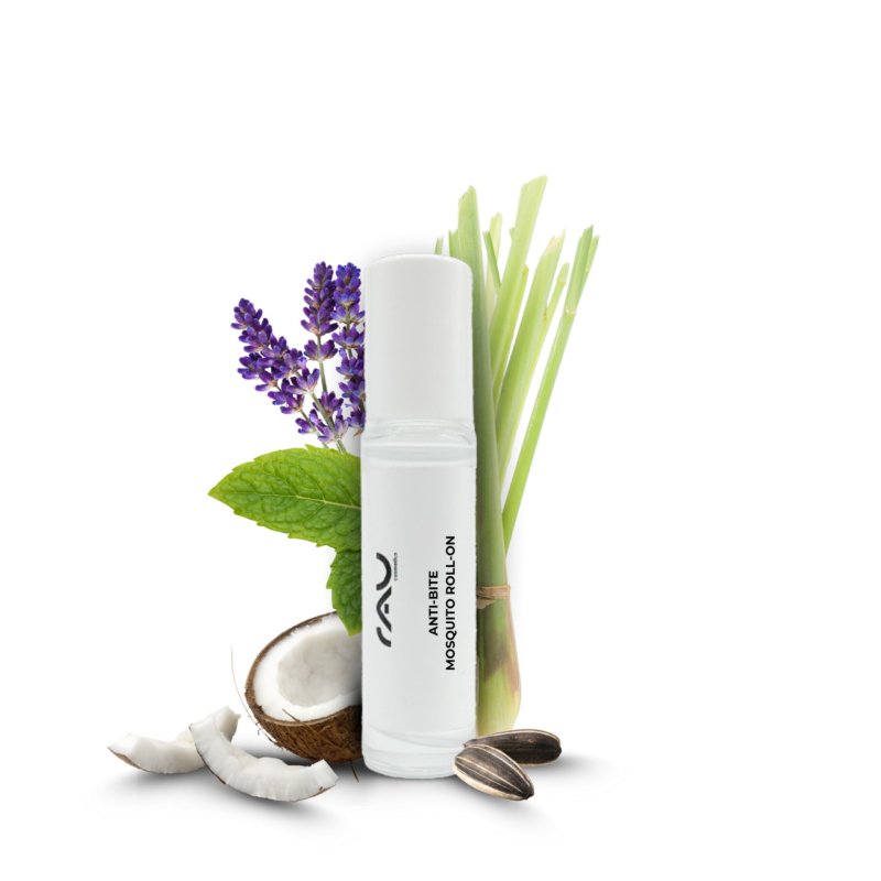 Der Anti Bite Mosquito Roll-On schuetzt auf natuerliche Weise vor Mueckenstichen und Insekten. Die Formulierung basiert auf aetherischen Oelen wie Zitronengras, Lavendel und Pfefferminze, die Muecken zuverlaessig fernhalten. Kokosoel und Sonnenblumenoel pflegen die Haut gleichzeitig und staerken die Hautbarriere.