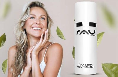 Put our RAU AHA Neutralizer on a cotton pad, wipe it over your face and let it absorb.